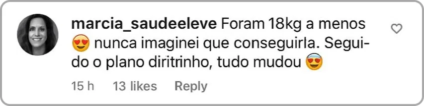 "O melhor foi me sentir saciada de verdade. Perdi 9.4kg e a gordura da cintura diminuiu muito! Não tem erro."